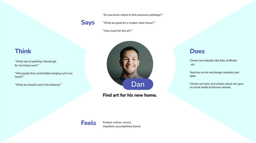 With the interviews and research, the next step is to create user personas and empathy maps that show us the portraits of the ArtX app users!
